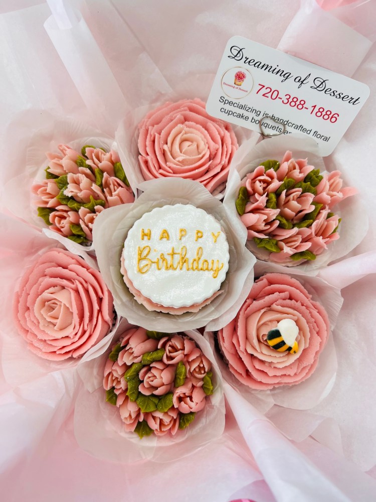 We are a boutique handcrafted floral cupcake business. Our floral cupcakes are the perfect gift. Text 720-388-1886