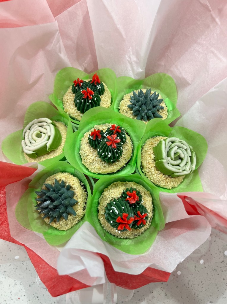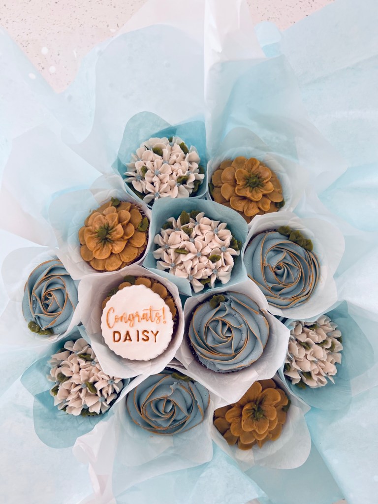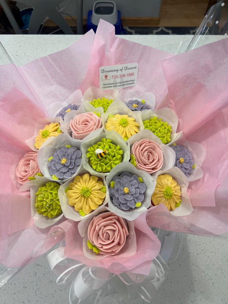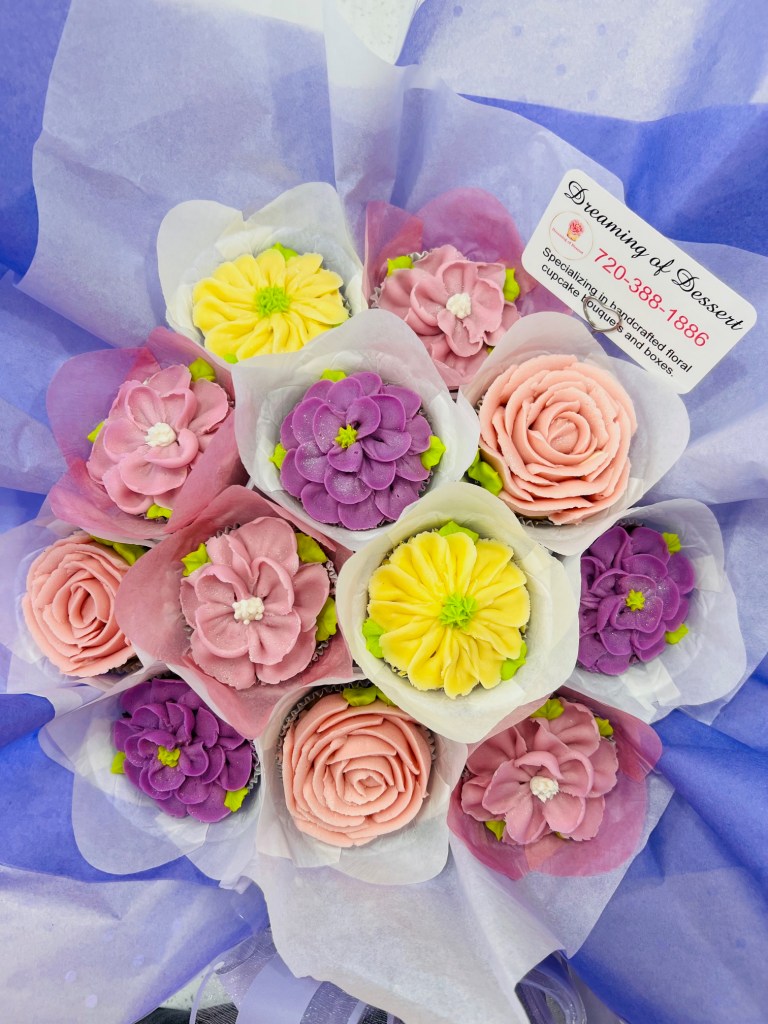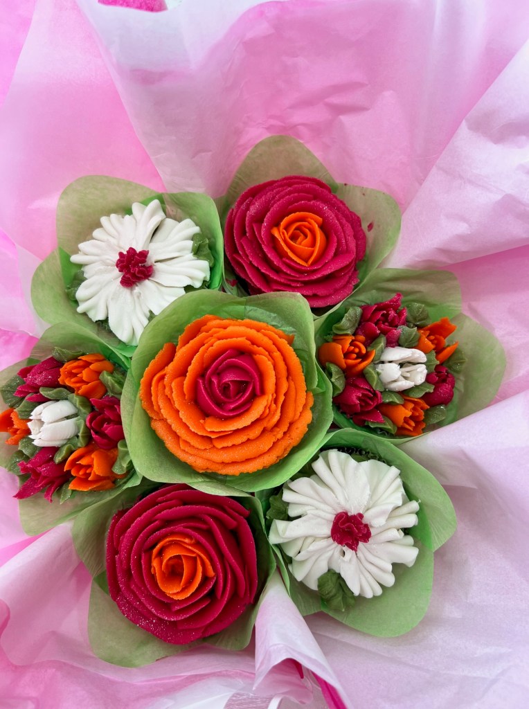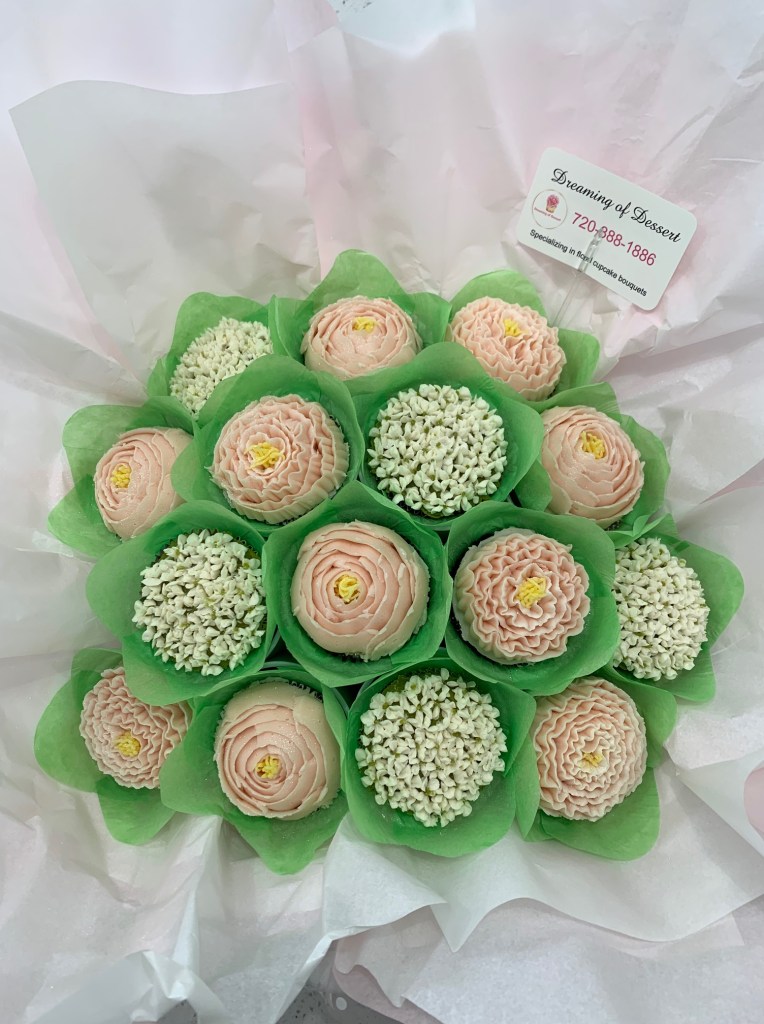Michele O. said, “I ordered this cupcake bouquet for my mother-in-law’s birthday yesterday. Tracy was extremely easy to work with, offering me many homemade cake options as well as icing types. She communicated the process well and had the bouquet ready exactly as promised. It was even prettier than the photos showed and tasted wonderful! Highly recommend this unique cake option for any special event. ⭐️⭐️⭐️⭐️⭐️”