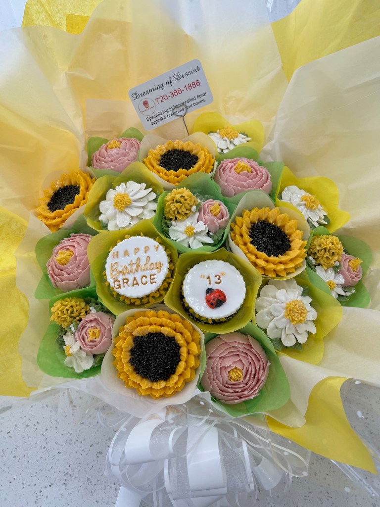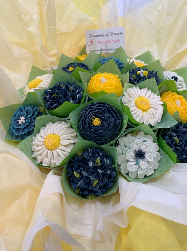 Jennifer B. said, “Just wanted to give a shout out to Dreaming of Dessert. My daughter was in a play last night. This woman had advertised herself on Facebook. I ordered one of her fall CUPCAKE bouquets-phenomenal. Fantastic service. Great communication, and very fair pricing. I’d order again in a heartbeat-yes, these are cupcakes, not real flowers.”